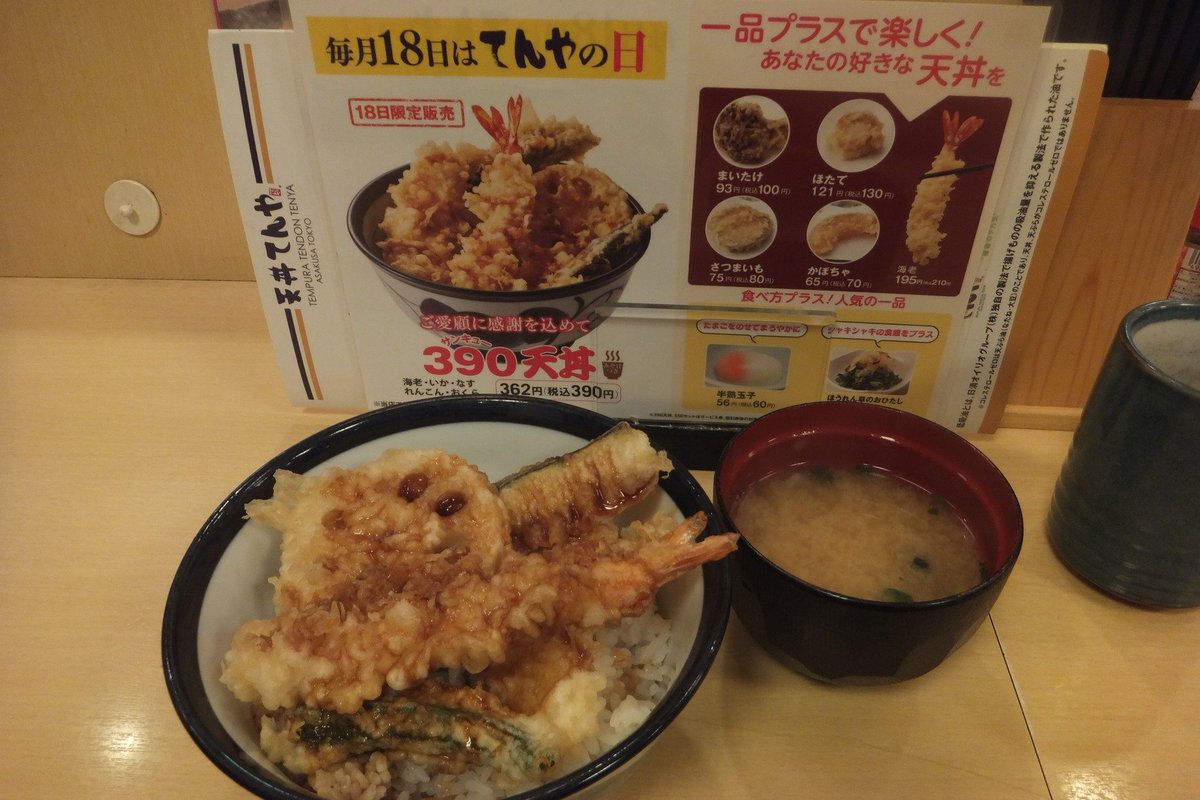 思うところがあっていつもと違うお店でいつものサンキュー天丼 390円。う〜ん…定食じゃないとわからんな。 (@ 天丼てんや 田町店 - @tendon_tenya in 港区, 東京都) swarmapp.com/c/7kxQ3mpWQeE pic.twitter.com/fL4xtaGFwU 2018-01-18 20:42:00