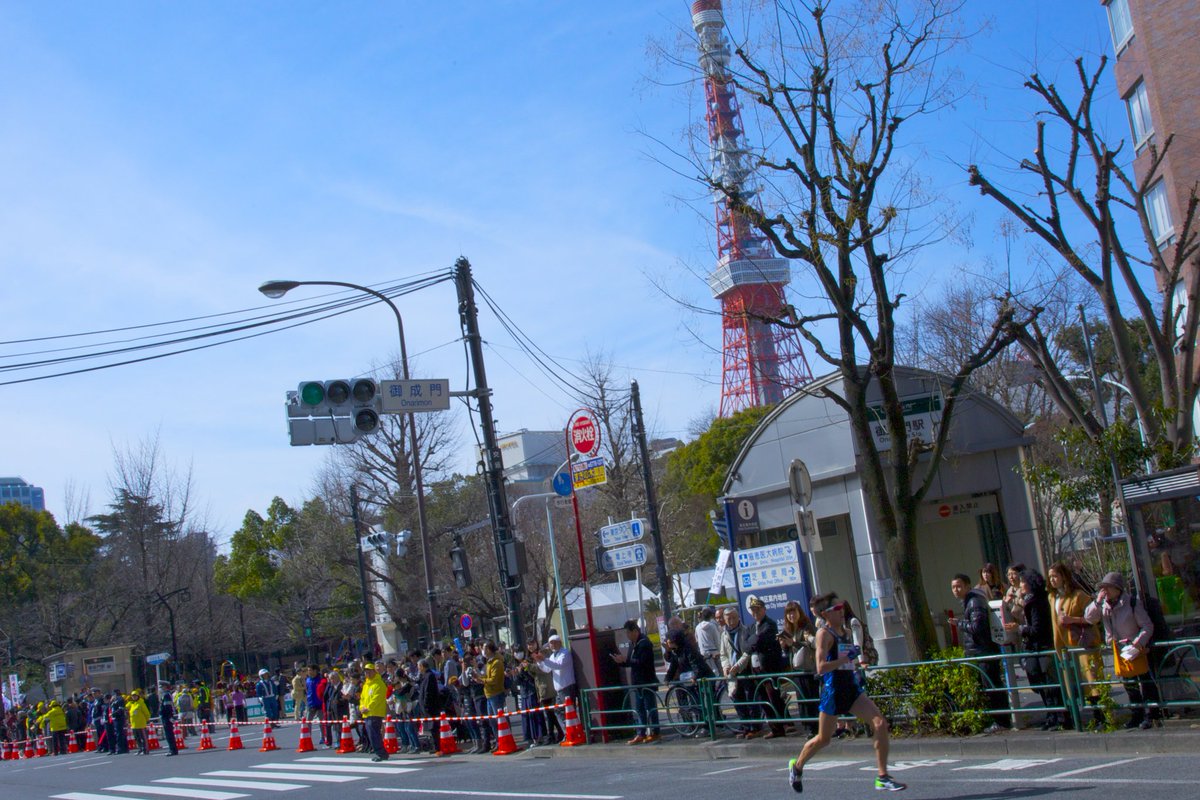 この時間の日比谷通り御成門交差点、手前に既に復路のガチランナーの皆さん、反対車線にはエンジョイしながら走るコスプレランナーも現れ始めました。みんな頑張れ〜❣️ pic.twitter.com/827odbhxFj 2018-02-25 12:06:00