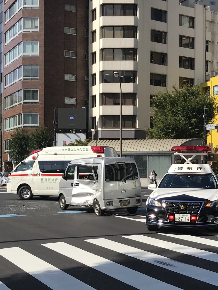 日比谷通り御成門交差点で事故。これから通行される方は事故する可能性があるので注意して下さい。
