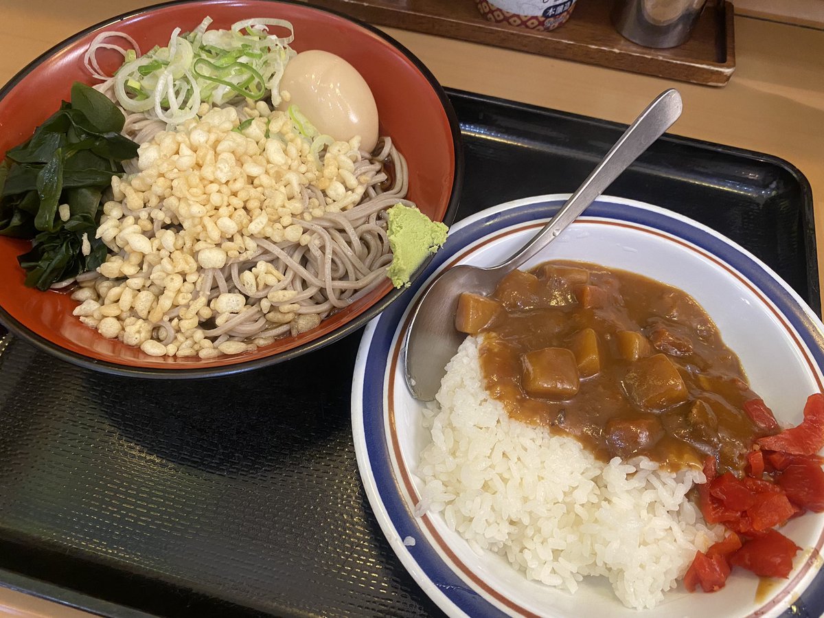 蕎麦に味玉とミニカレーのセットが期間限定の衝撃価格でなんと500円😳