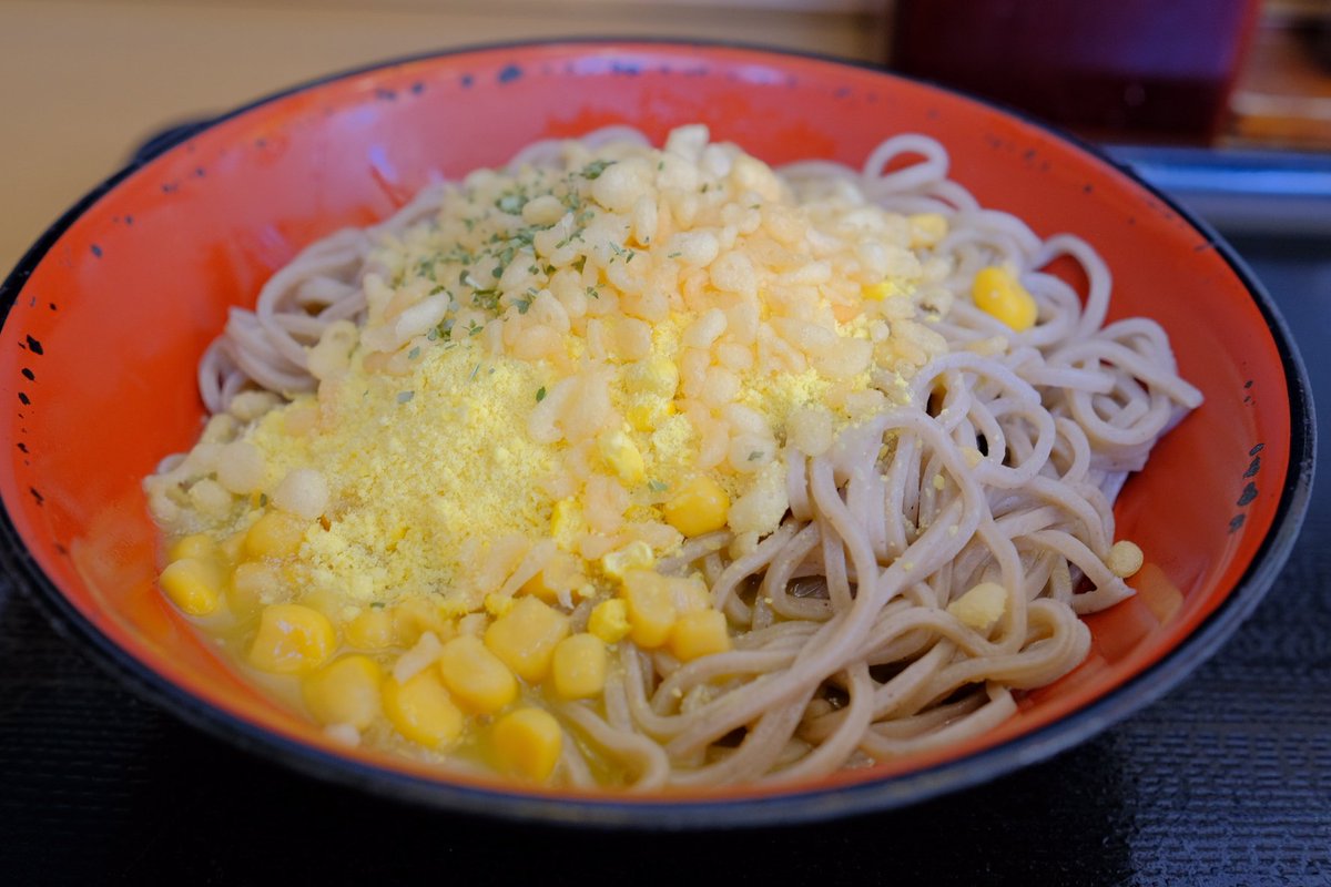 これあり!コーンの甘みと冷たいコーンポタージュが意外にお蕎麦とあってて、美味しい。濃厚コーンポタージュの粉末がいい仕事してる。リピートしたい😋 pic.twitter.com/83gc7iwdpI