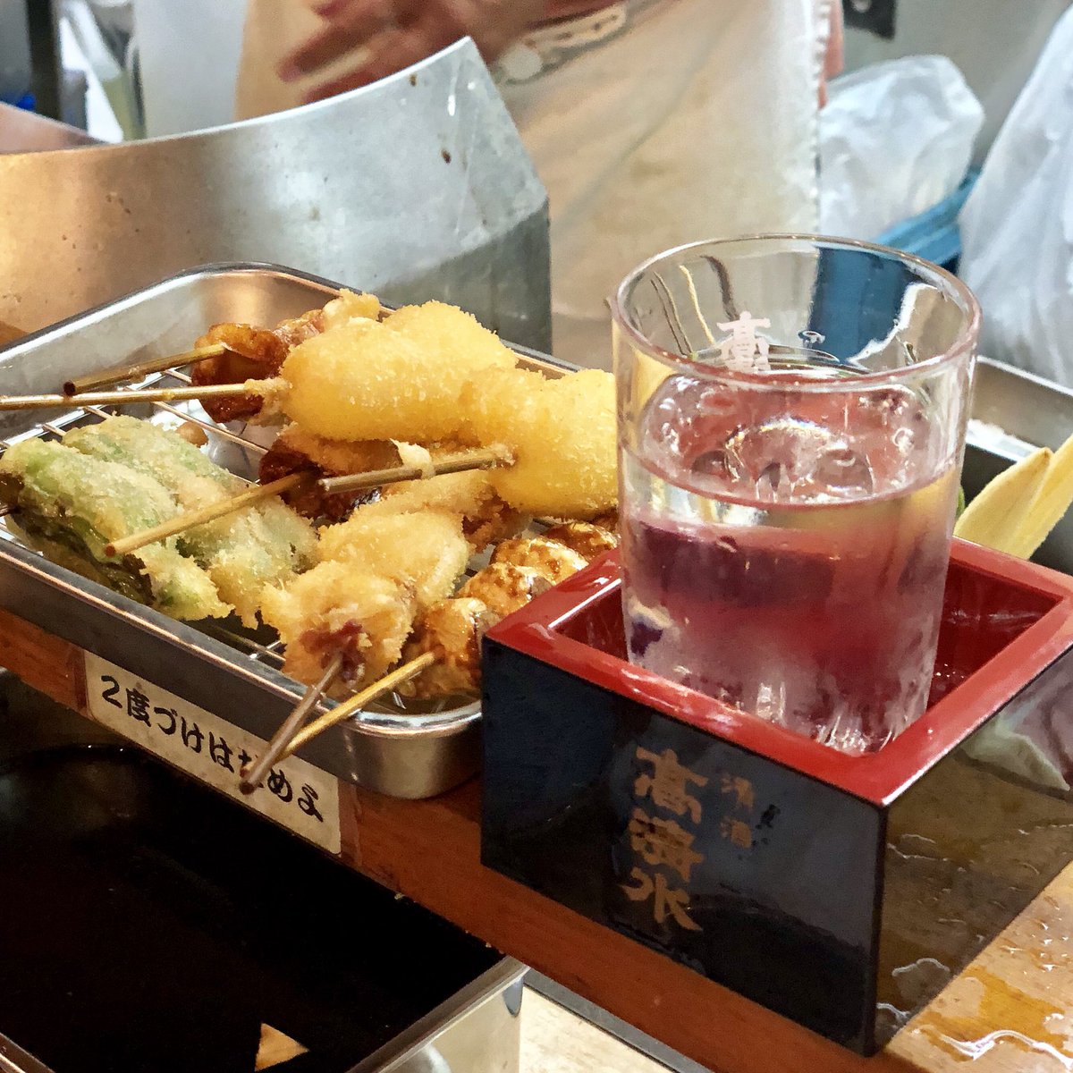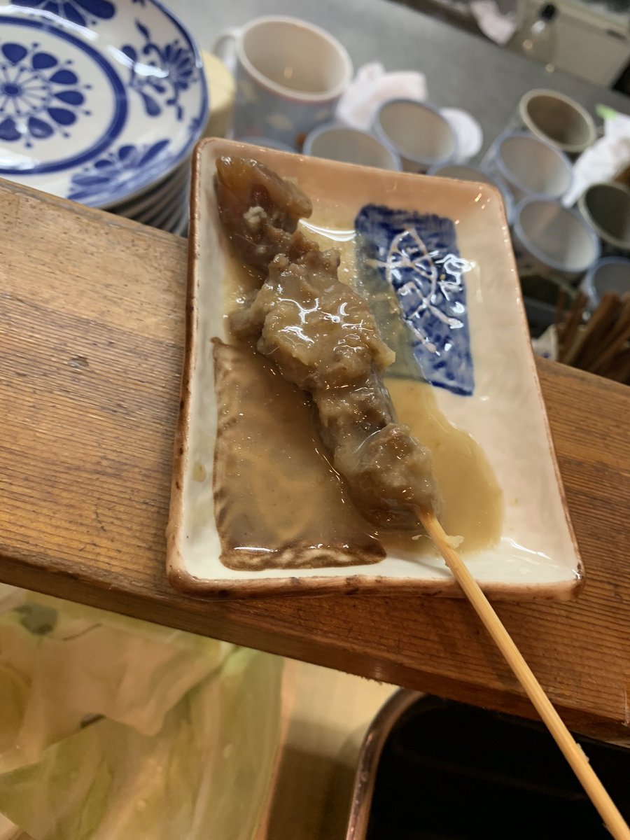 2019年5月30日13時21分。営業前の「串揚げ たけちゃん」を撮影しました。入口左側の窓には、「ミリオン出版が発行した『東京レトロ酒場』に掲載された紹介記事」なども貼られています。 -