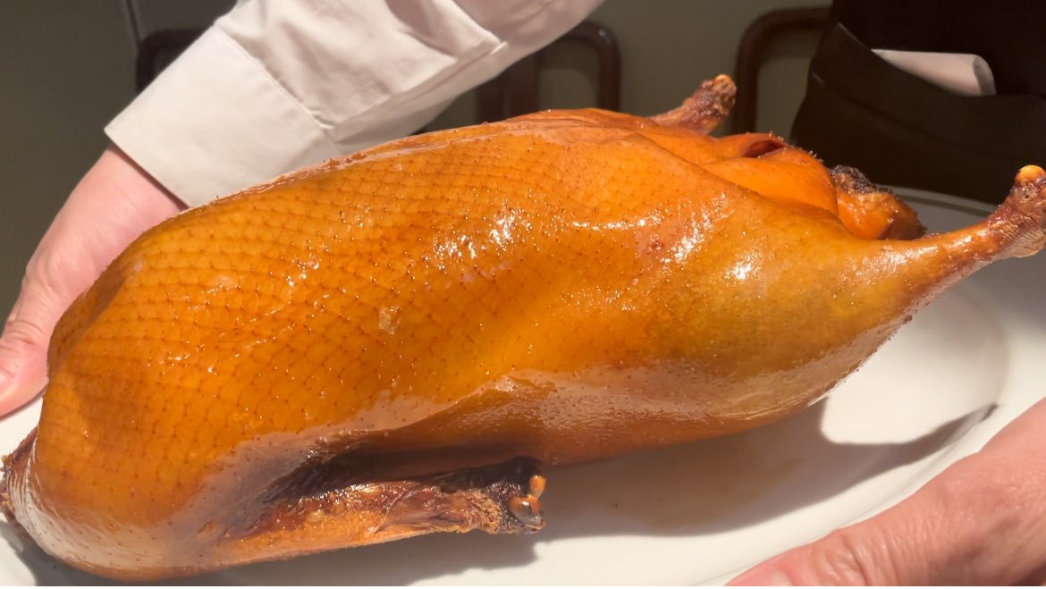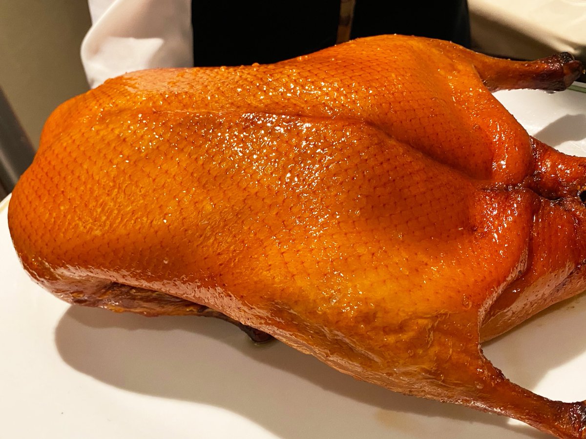 北京ダックはこの皮だけを食べます。とても贅沢な料理ですね。