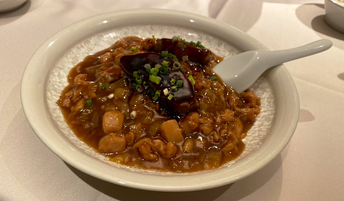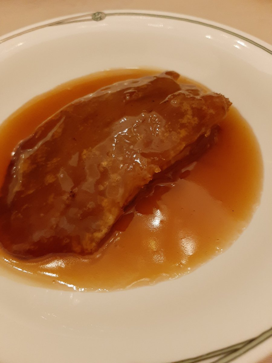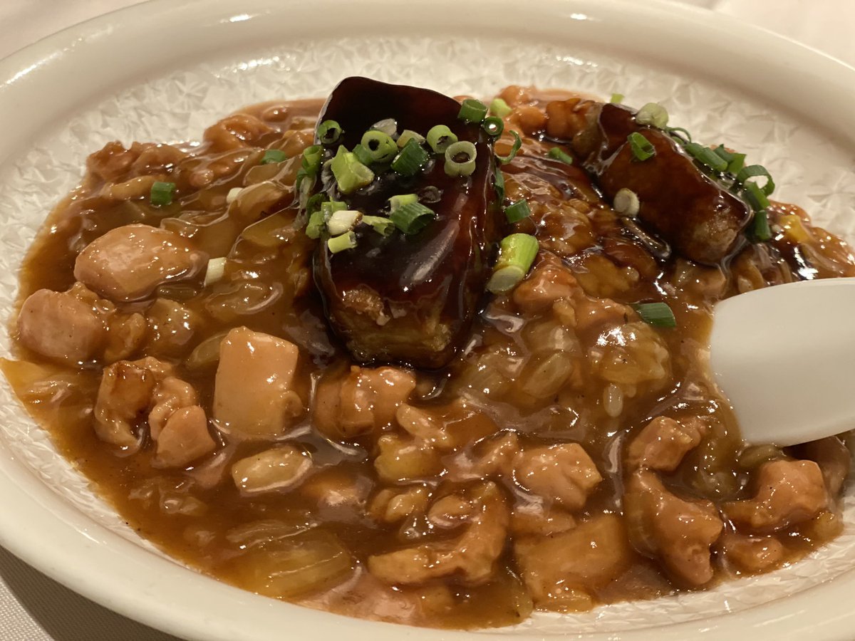 こちらが中国飯店三田店「フォアグラのソテー丼」という悪魔の食べものです。
